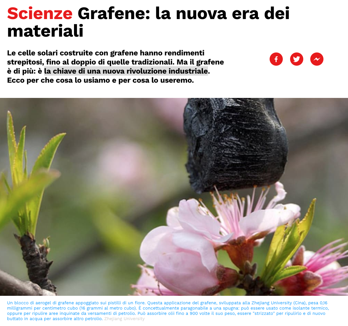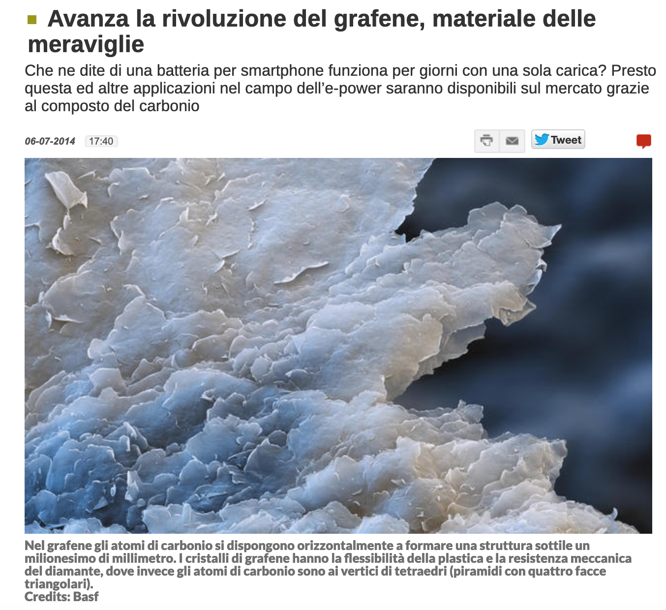 Il 13 maggio 2019 l’Ansa titola: ‘Fiocchi’ di grafene controllano l’attività del cervello. Selettivi e sicuri, aprono a terapie per le malattie neurologiche.