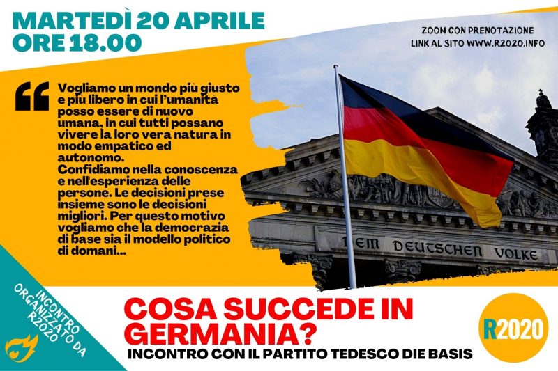 COSA SUCCEDE IN GERMANIA? Incontro con ilĀ Partito tedesco Die Basis Partecipanti tedeschi: Frank Roedel, cofondatore del partito e presidente dello stesso fino alle elezioni … Leggi tutto COSA SUCCEDE IN GERMANIA?