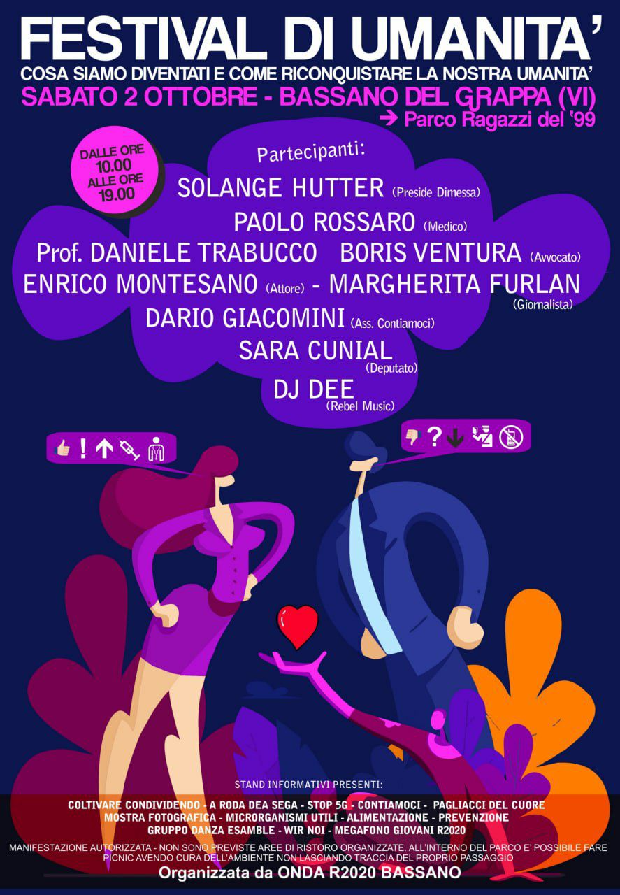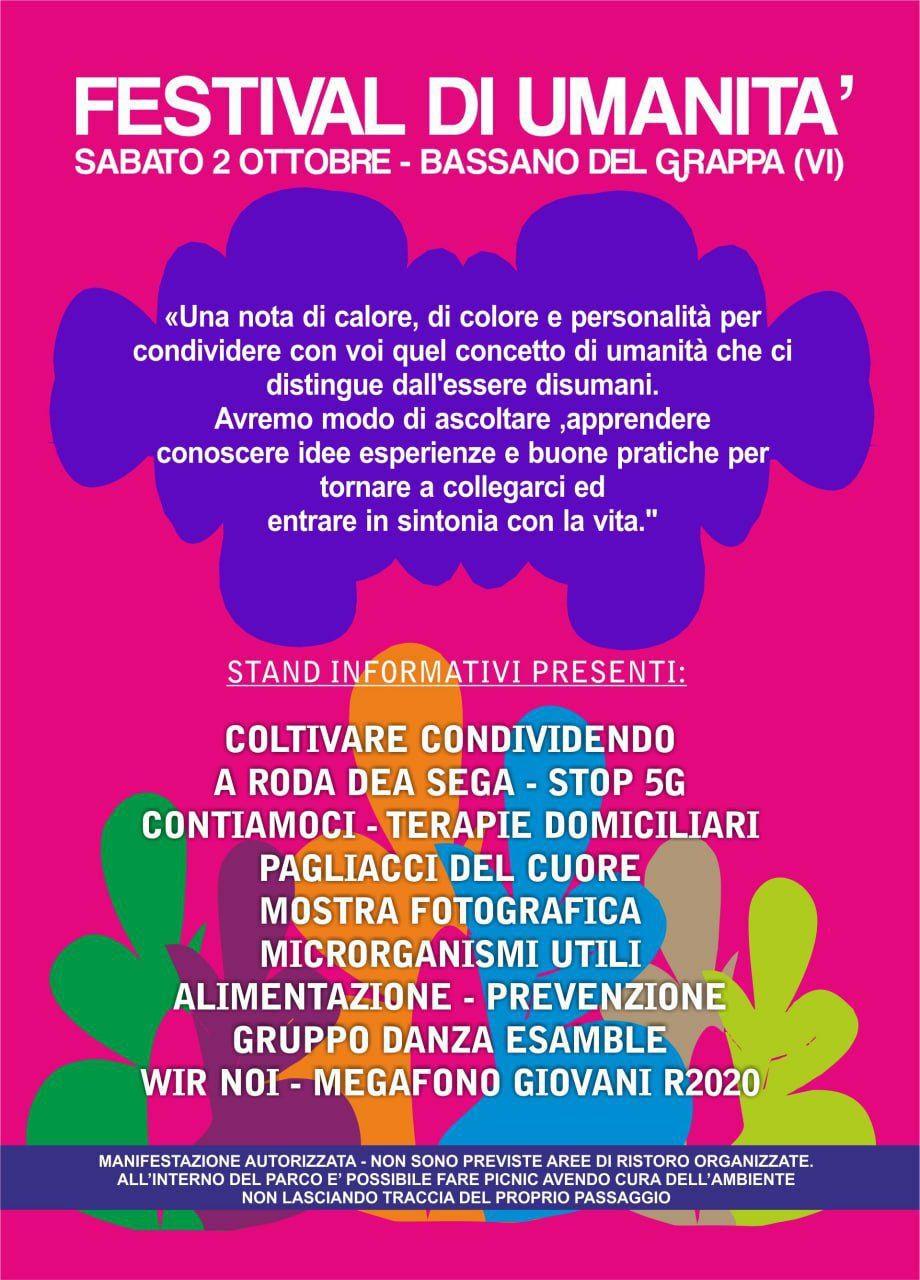 Ci vediamo sabato 2 ottobre a Bassano del Grappa. Il Festival di Umanità vi aspetta per riscoprirsi Umani, Solidali, Vicini! Rifletteremo insieme su cosa siamo diventati e come riconquistare la nostra umanità!
