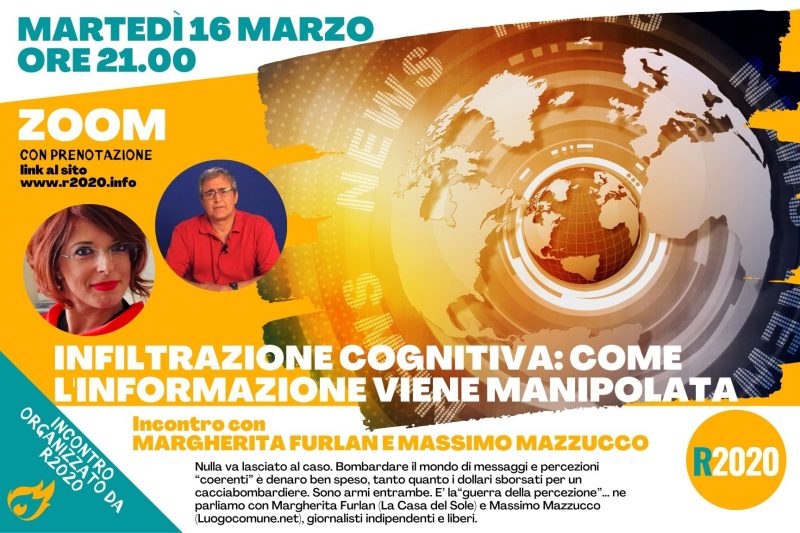 Incontro con Margherita Furlan e Massimo Mazzucco. Nulla valasciato al caso. Bombardare il mondo di messaggi e percezioni “coerenti” è denaro ben speso, tanto quanto … Leggi tutto Infiltrazione cognitiva, come l’informazione viene manipolata