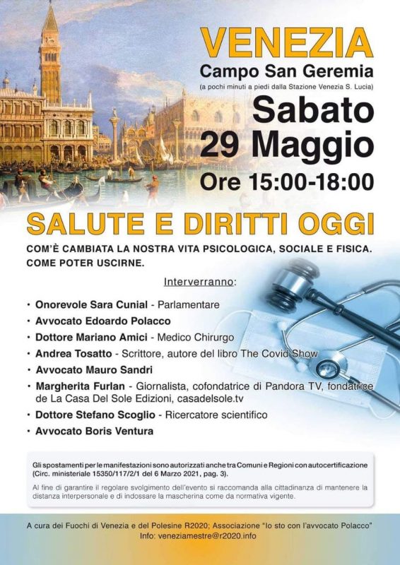 Com’è cambiata la nostra vita psicologica, sociale, fisica. E come poterne uscire: è questo l’argomento della Manifestazione Autorizzata che si terrà Sabato 29 maggio in … Leggi tutto Manifestazione a Venezia, il 29 maggio, dalle ore 15, Campo San Geremia