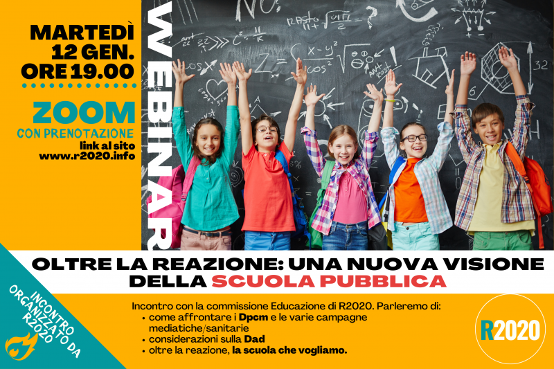 Oltre la reazione: una nuova visione della Scuola Pubblica. Webinar con la Commissione Educazione di R2020. Parleremo di: lavoro fatto finora in tema di scuola … Leggi tutto Oltre la reazione: una nuova visione della Scuola Pubblica